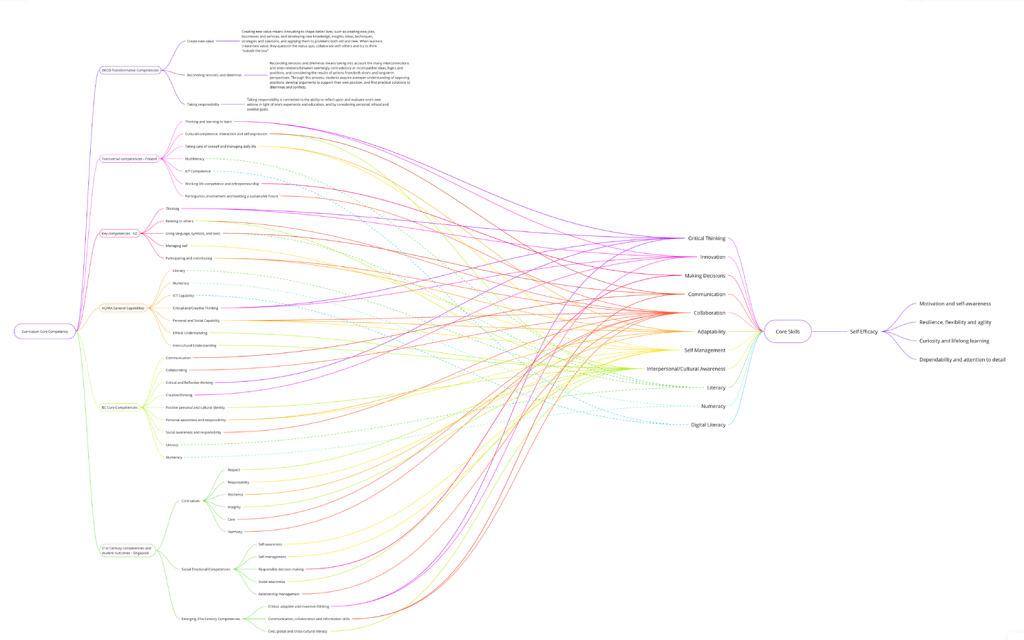 For anyone without a magnifying glass, I’ll go into it a bit at a time now. Because the OECD’s Transformative Competencies are so massive, I had to map those separately.